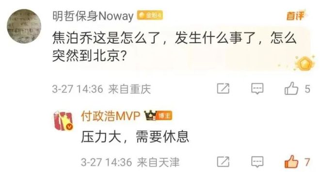 二是来自主教练杜锋的压力。杜锋的执教风格就不用多说了,经常在比赛暂停时对球员口吐芬芳,心理强大的球员还可以接受这种执教方式,但也有球员是承受不了的,焦泊乔就是其中之一。希望焦泊乔能够尽快调整好心态,早日重返赛场。也希望杜锋能够改变一下自己的执教风格,不要再通过口吐芬芳的形式向球员施压了。