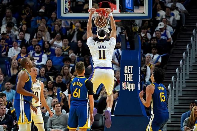 本场比赛中,湖人的替补中锋贾克森-海斯(Jaxson Hayes)的表现算得上是令人眼前一亮。海斯全场出场22分50秒,投篮4中3,罚球2中2,得到了8分6篮板1助攻2盖帽的数据,其中还包括了4个前场篮板,还有1次犯规,正负值为+16。海斯在进攻端的效果确实是相当不错的水平,他还是将自己在终结能力方面的特点发挥了出来,他也确实是起到了很好的效果,而且他在前场篮板争抢方面的作用也是有目共睹的。事实上,海斯在防守端也是将自己在护筐和内线防守方面的作用发挥了出来。海斯在比赛最后一节顶替了先发中锋德安德烈-艾顿(DeAndre Ayton)的位置,并且起到了很好的效果,这也是球队能够取得胜利的关键因素。