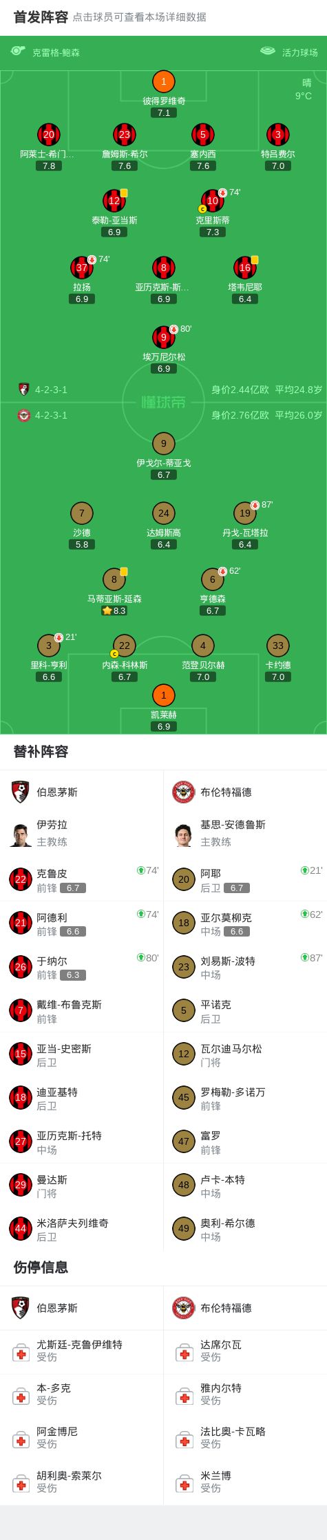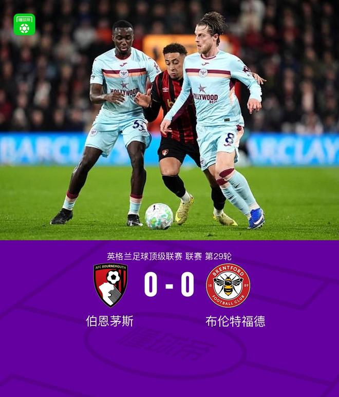 北京时间3月4日英格兰足球顶级联赛 联赛 第29轮,伯恩茅斯主场对阵布伦特福德。最终比分伯恩茅斯 0-0 布伦特福德。