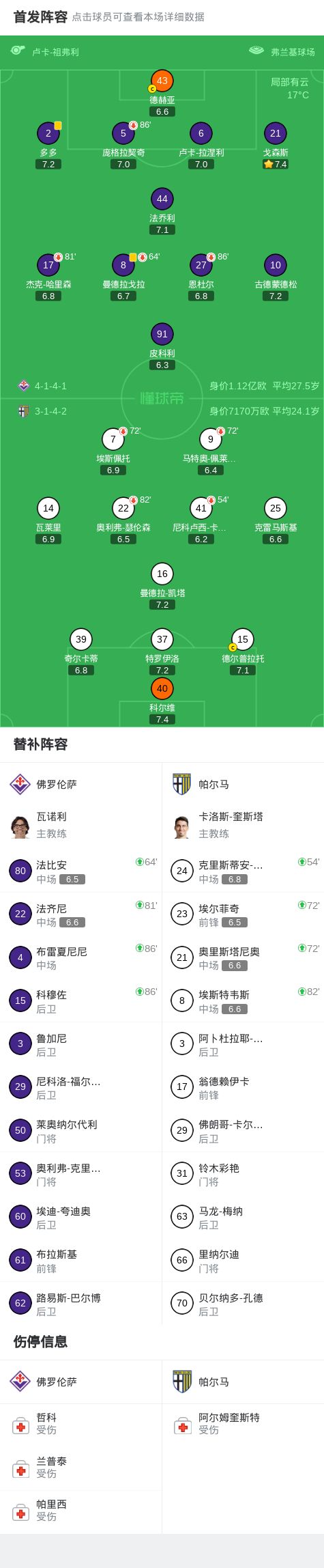 佛罗伦萨0-0帕尔马,比赛沉闷,双方共1次射正