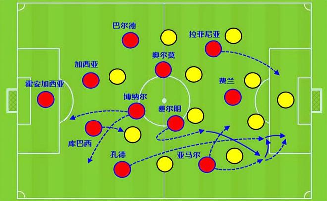 因为他的跑位,让亚马尔有更多的出球选择,既可以考虑传球,也能内切或者突破到禁区后自己攻击球门。